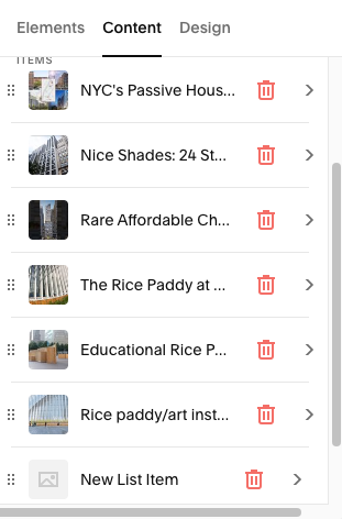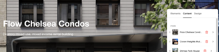 This lives solely at the bottom of Sustainable Design. My suggestion is to limit it to 3-7 featured projects that give an idea of projects with a sustainable design focus. Hover over the image area > click the Content tab > click the project you want to edit, or add a new project.