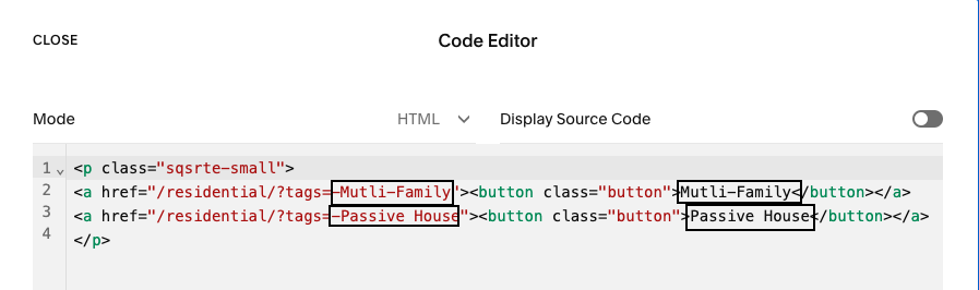 In order to include filter tags on this type of page, a work-around has been used, so editing tags here is a bit different and limited to the ones below.