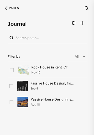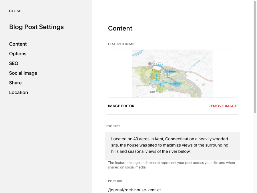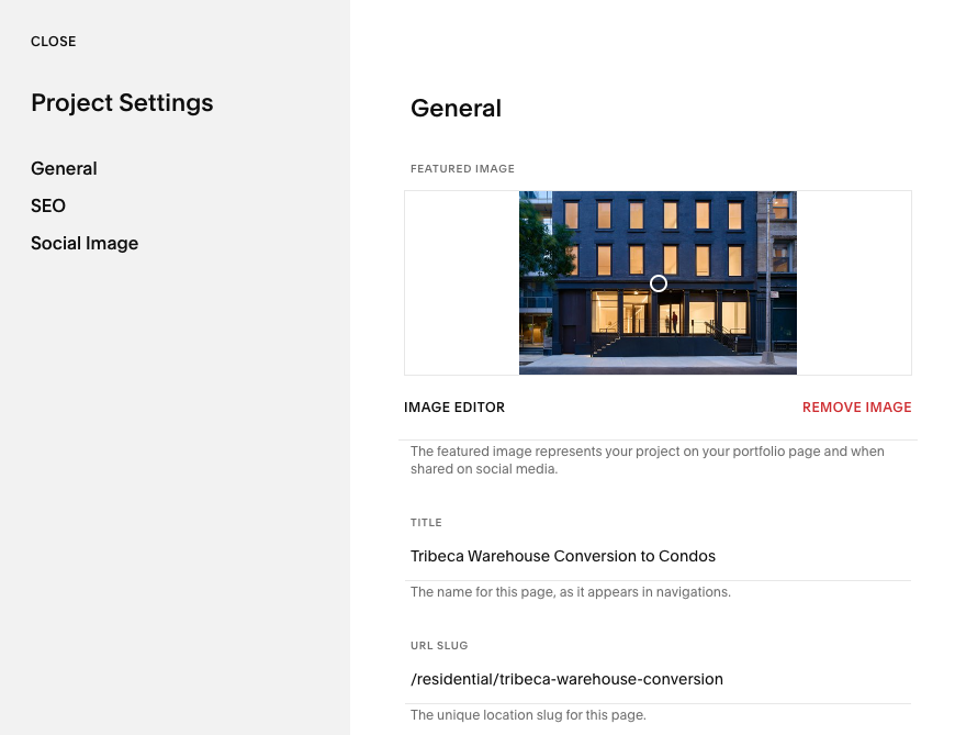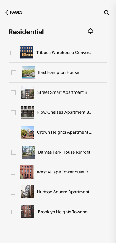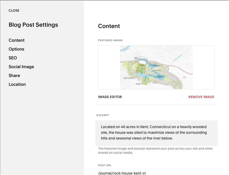 These thumbnails live on “Index” pages, like Work Category pages (such as Residential) and the Journal page, serving to represent the project or blog post, like a book cover.