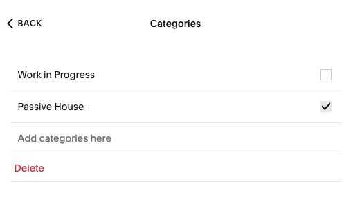 • Categories (ex. Passive House, Work in Progress, Inspiration)