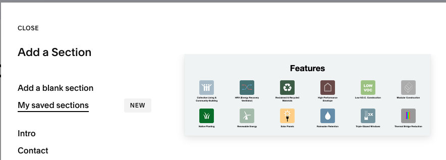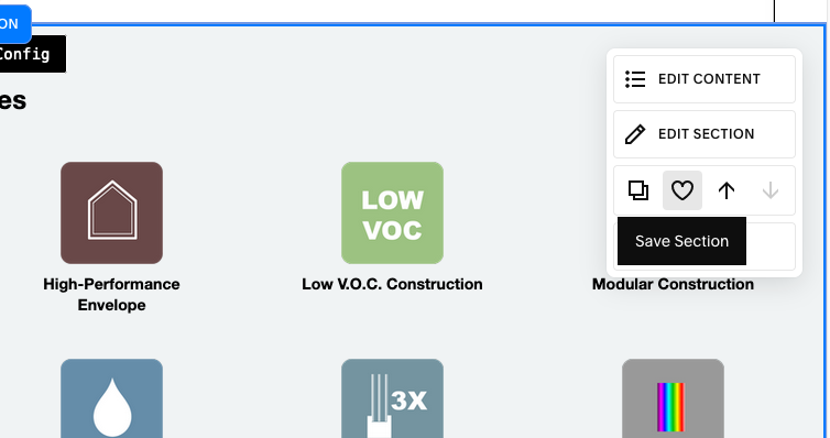 1/ When in edit mode on a page, hover over the section you want to save. Click the heart icon.