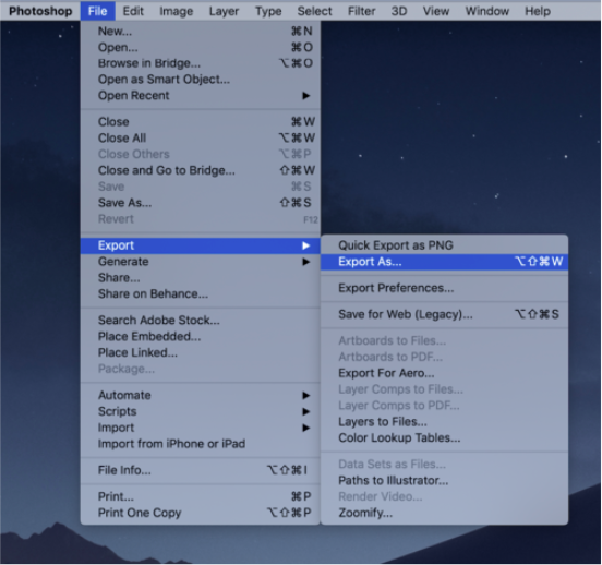Save via “Export As”