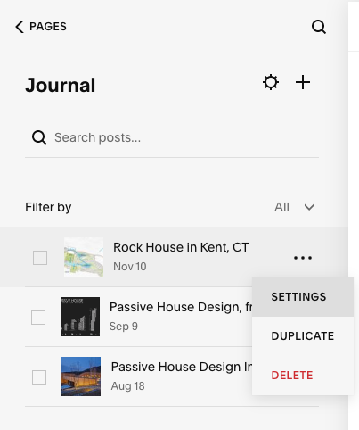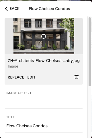 To edit, click on the Index where the page lives in (ex. Residential, Journal), then click the 3 dots and “Settings”, this will bring up a window where you can add, replace, or remove the image.