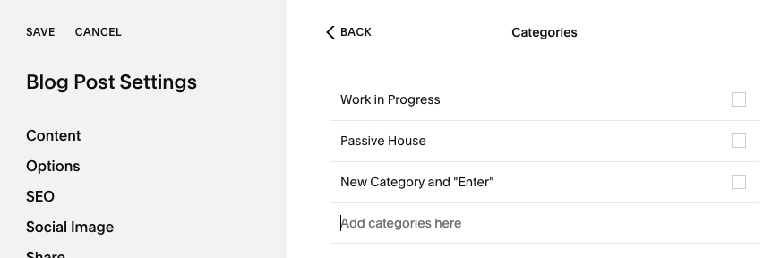 3. Add or delete any Categories, and then make sure to Save. To add a catgeory, type the words and then press “Enter”.